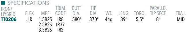 The Iron/Hybrid shaft come in a 39" blank that can be trimmed to a desired stiffness: for the softest flex use trim code IR8, IR37 for a medium flex and IR2 for a firm flex.